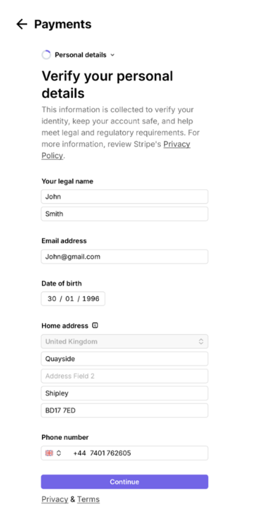 Next, fill out your personal details. This information is required to verify your identity and keep your account secure. If you’d like to learn more about how your data is handled, you can review our Privacy Policy by selecting the link provided.